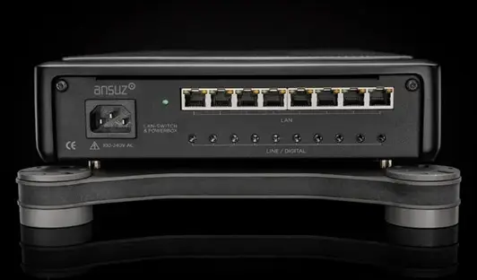 The built-in Ansuz PowerBox Line/Digital section extends the PowerSwitch’s performance by transferring noise-cancelled power to connected Ansuz cables and components. This seamless integration enhances the overall system synergy, preserving the refined musical qualities of the PowerSwitch across the entire audio chain.