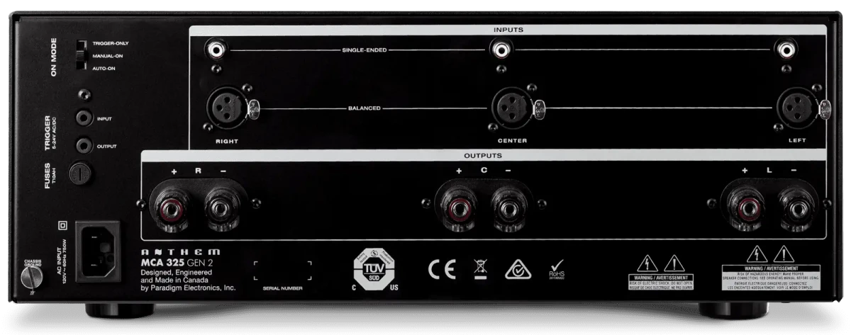 Introducing the MCA 325 Gen 2 from Anthem AV, a 3-channel power amplifier; 225 watts per channel continuous power into 8 ohms.