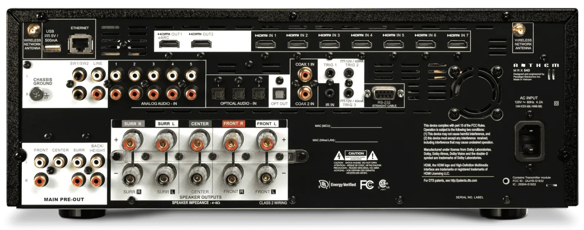 Anthem’s MRX A/V Receivers are about maximizing performance for the money. Building on the feature set of our previous models, we’ve added the newest version of ARC Genesis, a redesigned and more accurate calibration microphone, Anthem Web User Interface, integrated streaming support, object-oriented audio codecs with support for up to 15.2 channels and the clean power delivery Anthem is known for with up to 140 watts per channel.