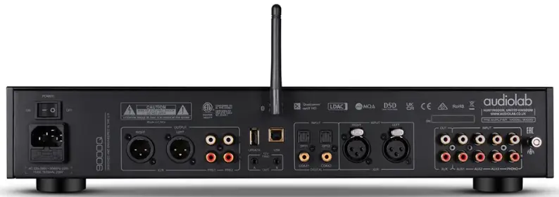 The 9000Q supports a wide array of inputs, accommodating both analog and digital sources. These include AUX inputs, balanced XLR, dedicated phono input, optical and coaxial S/PDIF connections, Bluetooth 5.1, and PC USB. Its flexible output configuration offers fixed-level AUX and three variable pre-outs (RCA and XLR), which can be used simultaneously without performance degradation. Features like tone controls, a fully balanced XLR signal path, and an “AV Direct” mode for seamless AV integration further amplify its versatility in managing complex hi-fi systems.