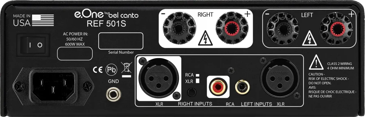 The Bel Canto e.One REF501S Power Amplifier is built for serious listeners who value musical truth, transparency, and control. Whether paired with high-sensitivity speakers or complex loads, it delivers performance that competes with far larger and more expensive amplifiers. With Bel Canto’s proven engineering and minimalist aesthetic, the REF501S embodies the future of audiophile-grade Class D amplification.
