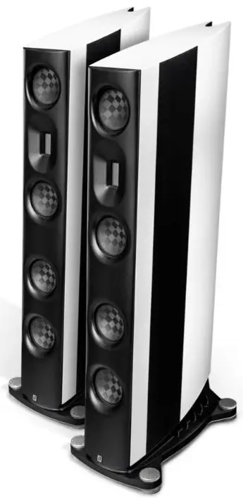 The cabinet incorporates CNC-milled hardwood laminates and 1mm carbon fiber side panels for rigidity. Internally, block-milled bracing minimizes standing waves, while Ansuz Darkz technology decouples the speaker for clearer sound and refined aesthetics.