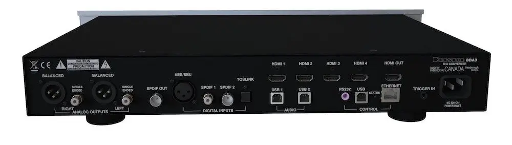 The Bryston BDA-3 DAC houses two AKM DAC chips that offer up to 32-bit/384kHz resolution and the ability to decode up to DSD256, this can be done via the two USB inputs on the back. Something unique to the Bryston BDA-3 are its four HDMI inputs, Bryston state that this makes this DAC suitable for today’s home entertainment lifestyle.