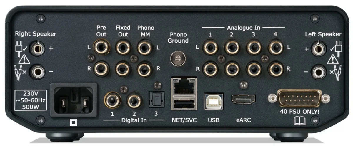 From digital to analogue, the 40 AMP caters to all your audio needs. It includes a low-noise MM phono stage inspired by the award-winning Classic PHONO, providing an exceptional listening experience for vinyl enthusiasts. On the digital front, it supports up to 32-bit 768kHz PCM and DSD1024 files, powered by HyperStream IV Dual DAC technology. This versatile connectivity ensures compatibility with a wide range of audio equipment and sources.