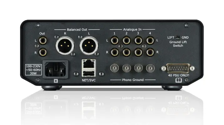 One of the key features of the 40 PPA is the ability to connect up to four sources, allowing the listener to easily switch between turntables, arms or cartridges as desired. Each input can be adjusted between Moving Magnet and Moving Coil cartridges, for which specific gain (in 5dB steps), resistance and capacitance can be be set independently.