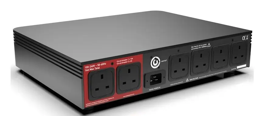 The Isotek V5 Aquarius offers four independent outlets designed for source components, each with a maximum current capacity of 6A. These outlets are suitable for devices such as CD players, preamplifiers, and streaming equipment. Additionally, the conditioner provides two independent high-current outlets, each capable of handling up to 16A. These outlets are versatile and ideal for power amplifiers, active subwoofers, active loudspeakers, and even TVs.