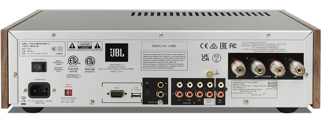 The JBL SA550 is designed to accommodate a wide range of audio devices. With its four analog inputs, including an MM phono stage for vinyl lovers, you can easily connect your turntable, preamp, or other analog sources. This amplifier is built to handle all your audio needs, whether you're enjoying your vinyl collection or streaming music from your digital library.