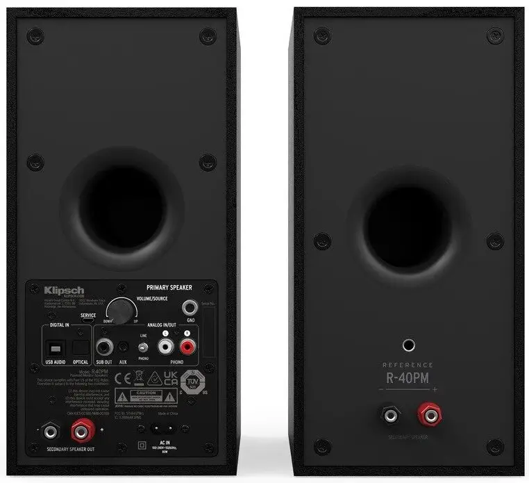 The Klipsch R-40PM Active Bookshelf Speakers are a well-rounded audio solution designed to deliver impressive sound quality without the need for external amplification. With a weight of 8.3 kg and compact dimensions measuring 30 x 14.5 x 25.65 cm, these speakers are both portable and versatile, making them suitable for various spaces, from small rooms to mid-sized living areas. Their MDF enclosure type employs a bass-reflex design via a rear-firing port, ensuring enhanced audio resonance.