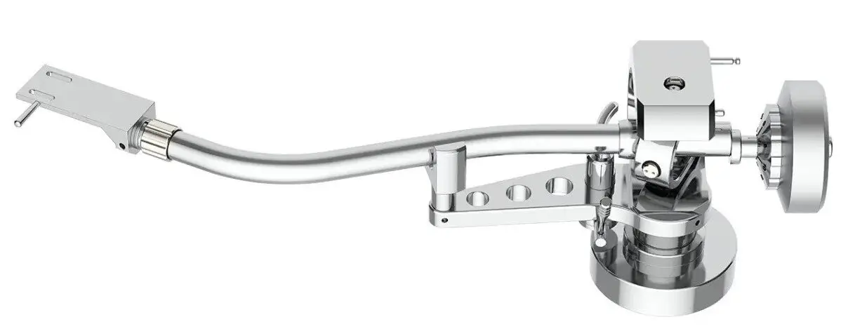 The Project Evo AS S-Shaped Tonearm features a range of functional design elements. The tonearm incorporates flexible high-purity copper inner wiring for efficient signal transmission. It employs an aluminum bearing block, contributing to the overall stability and precision of the tonearm assembly. Furthermore, the ultra-low friction 4-pin point cardanic tonearm bearing ensures smooth and accurate movement.