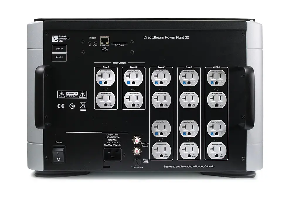 Demanding systems require remarkable power. The P20 Mains Regenerator is PS Audio's flagship mains regenerator. Delivering protected, pure, regulated, distortion-free AC power. With peak power levels of 3600 watts, no equipment can tax the mighty P20. Finally, your most coveted components have the opportunity to unleash their full potential, no longer hindered by dynamic drops in AC caused by the unavoidable resistance of the miles of wiring between you and the power station. PS Audio P20 regulates both long-term fluctuations and peak dynamic without deviation, ensuring a solid foundation from which to build a state-of-the-art system. Its low output impedance and unhindered AC delivery are equivalent to less than 50 feet of 12 gauge wire connected directly to your city power source without the connecting miles of wire, the many transformers, and the multiple neighbours weakening and contaminating your power. The most demanding music systems require nothing less than the P20 Mains Regenerator.