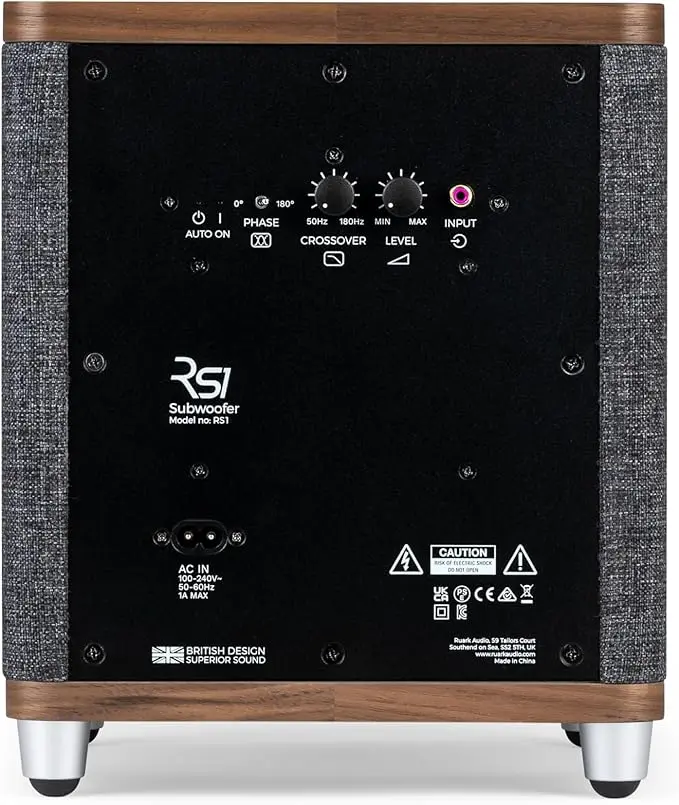 The controls on the RS1 Subwoofer are user-friendly and versatile, allowing you to fine-tune your audio experience. With an adjustable crossover spanning from 50Hz to 180Hz, input/volume level control, and a 180-degree phase switch, you have the flexibility to tailor the subwoofer's output to your preferences.