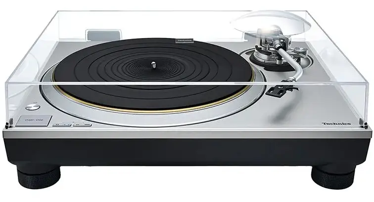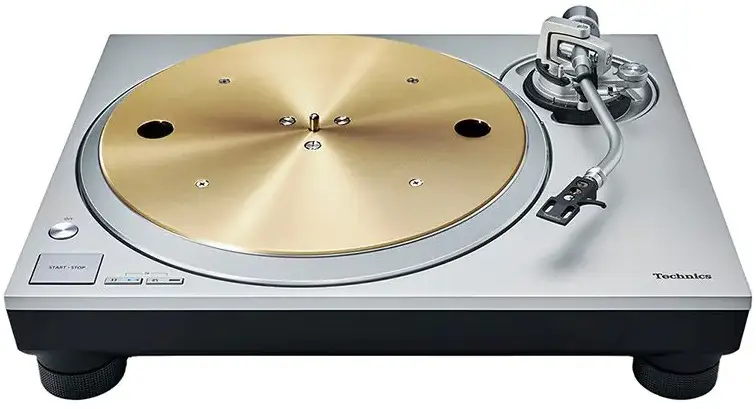 The turntable features a three-layered platter made from a combination of brass and aluminium die-cast. It includes a rubber covering on the rear surface to absorb unnecessary resonance. This design not only provides exceptional rigidity and vibration damping but also surpasses the SP-10MK2 in rotational stability and has more than twice the inertial mass of the SL-1200MK5.